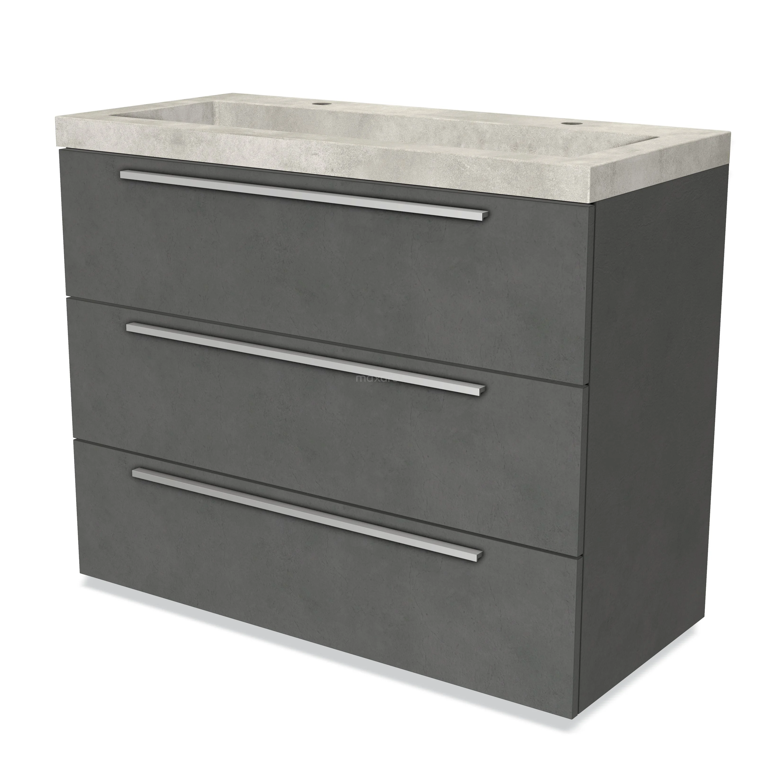Modulo Vanity units with basin | 100 cm Dark grey concrete Flat front Concrete 3 drawers