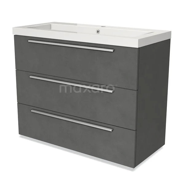 Modulo Vanity units with basin | 100 cm Dark grey concrete Flat front Mineral marble 3 drawers