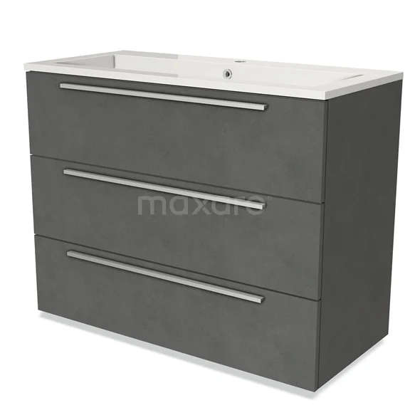 Modulo Vanity units with basin | 100 cm Dark grey concrete Flat front Mineral marble 3 drawers