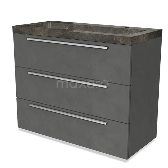 Modulo Vanity units with basin | 100 cm Dark grey concrete Flat front Natural stone 3 drawers