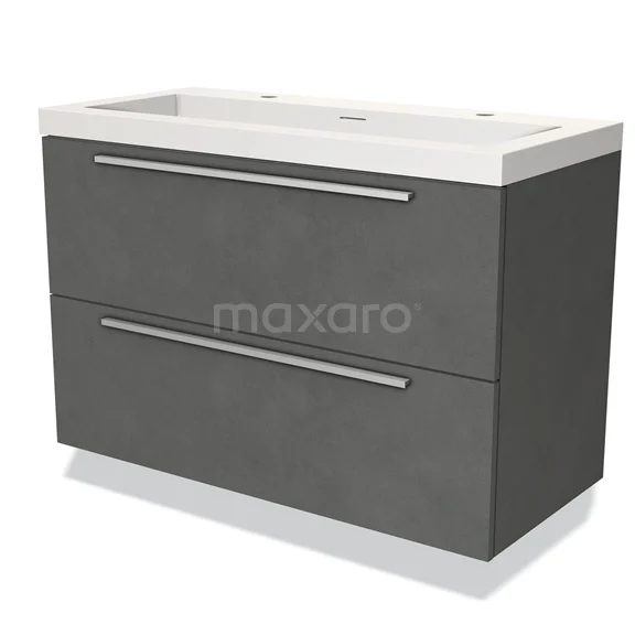 Modulo Vanity units with basin | 100 cm Dark grey concrete Flat front Solid surface 2 Stacked drawers