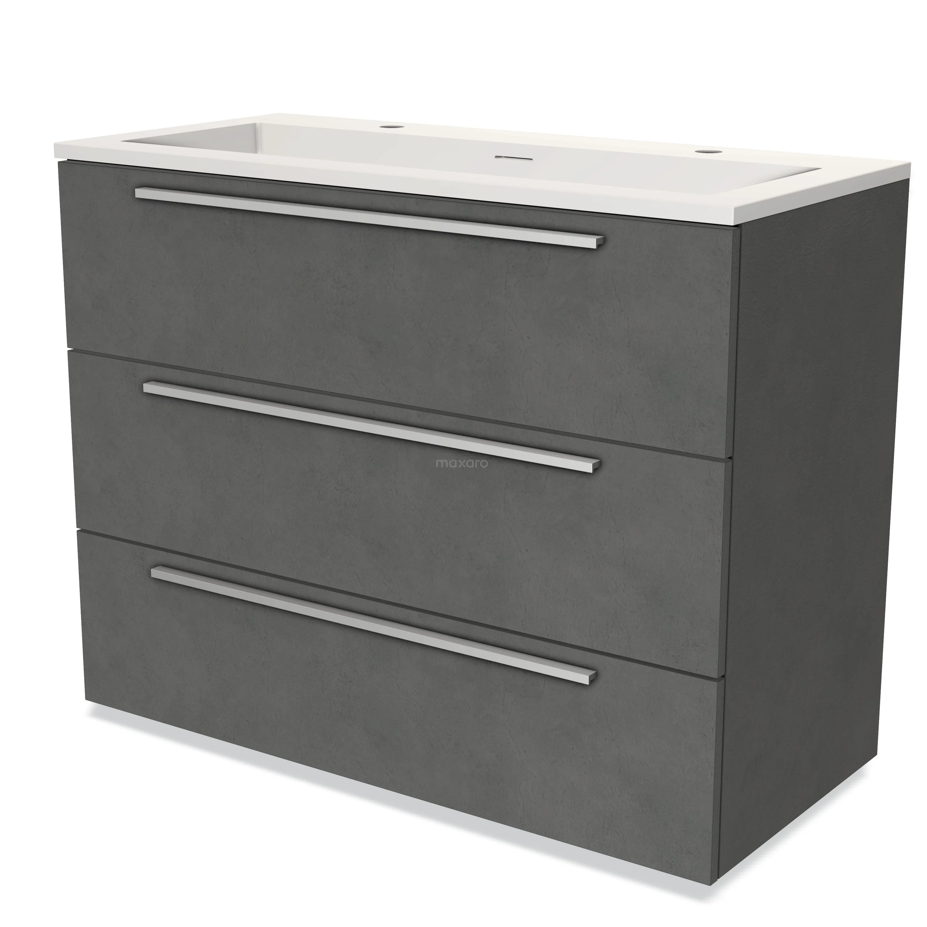Modulo Vanity units with basin | 100 cm Dark grey concrete Flat front Solid surface 3 drawers