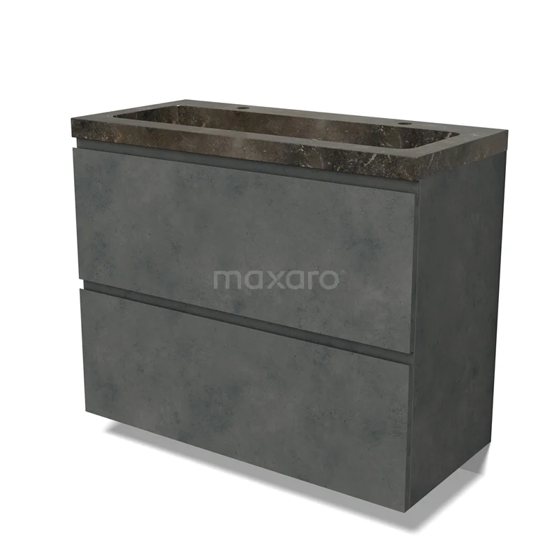 Modulo Vanity units with basin | 100 cm Dark grey concrete Handle-less front Natural stone 2 stacked drawers under each other