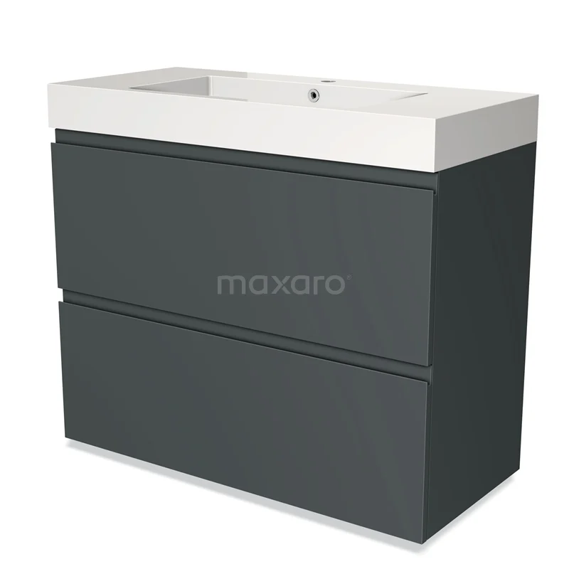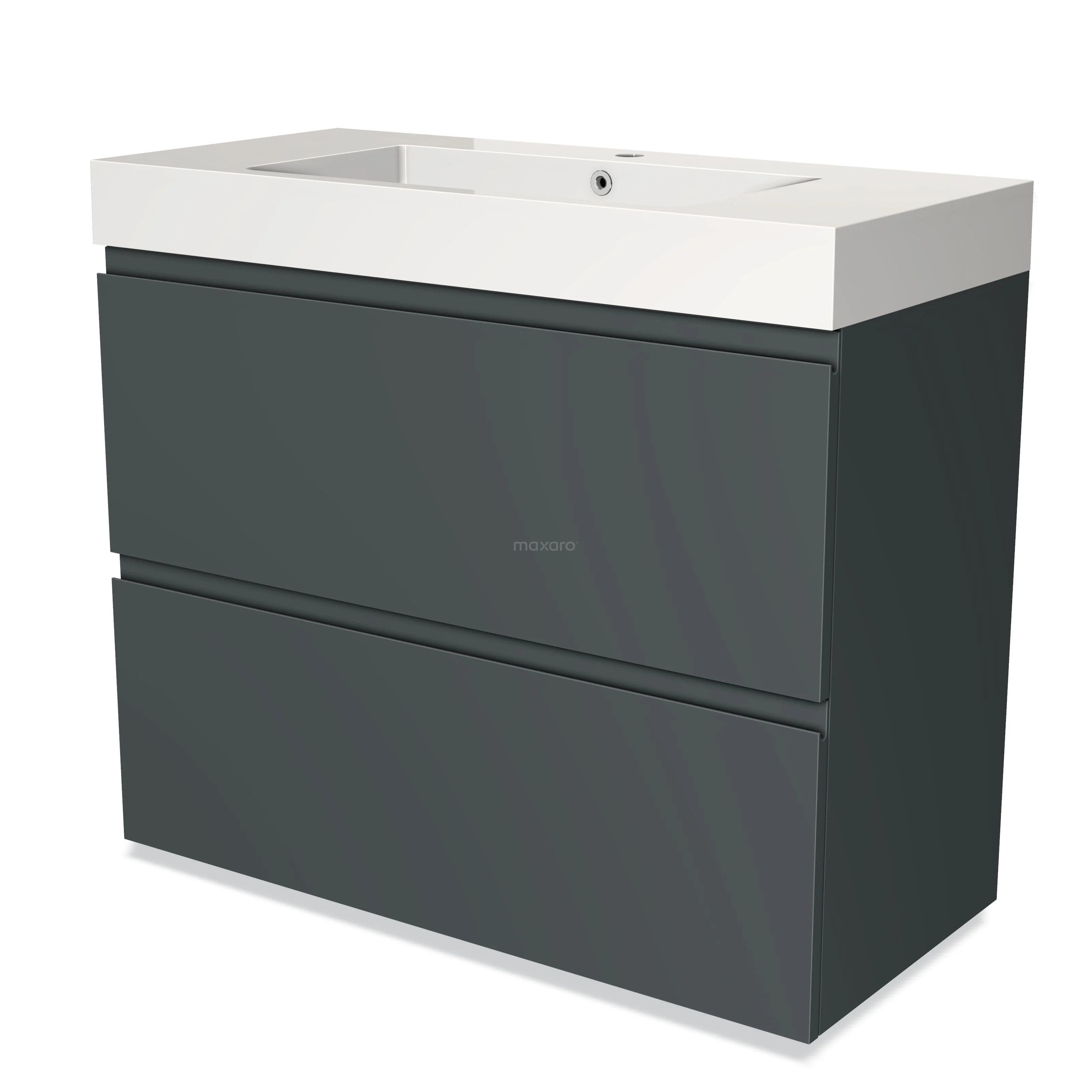 Modulo Vanity units with basin | 100 cm Dark grey Handle-less front Mineral marble 2 stacked drawers under each other