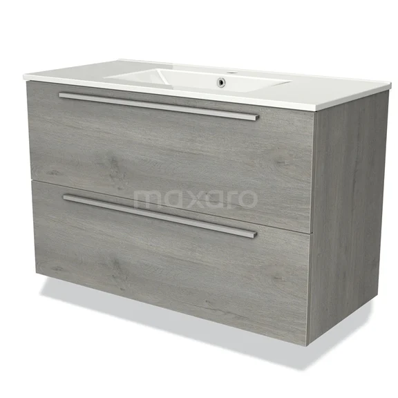 Modulo Vanity units with basin | 100 cm Grey oak Flat front Ceramic 2 Stacked drawers