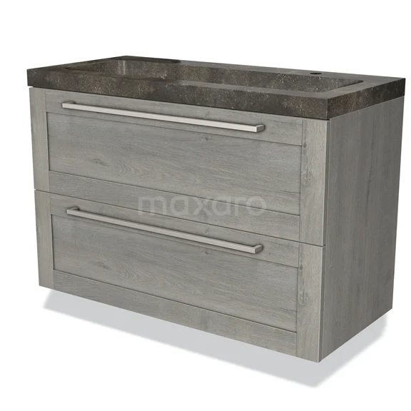 Modulo Vanity units with basin | 100 cm Grey oak Frame front Natural stone 2 Stacked drawers