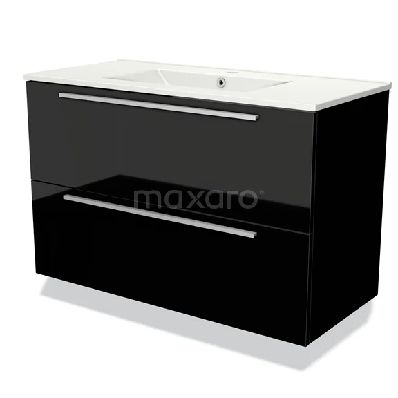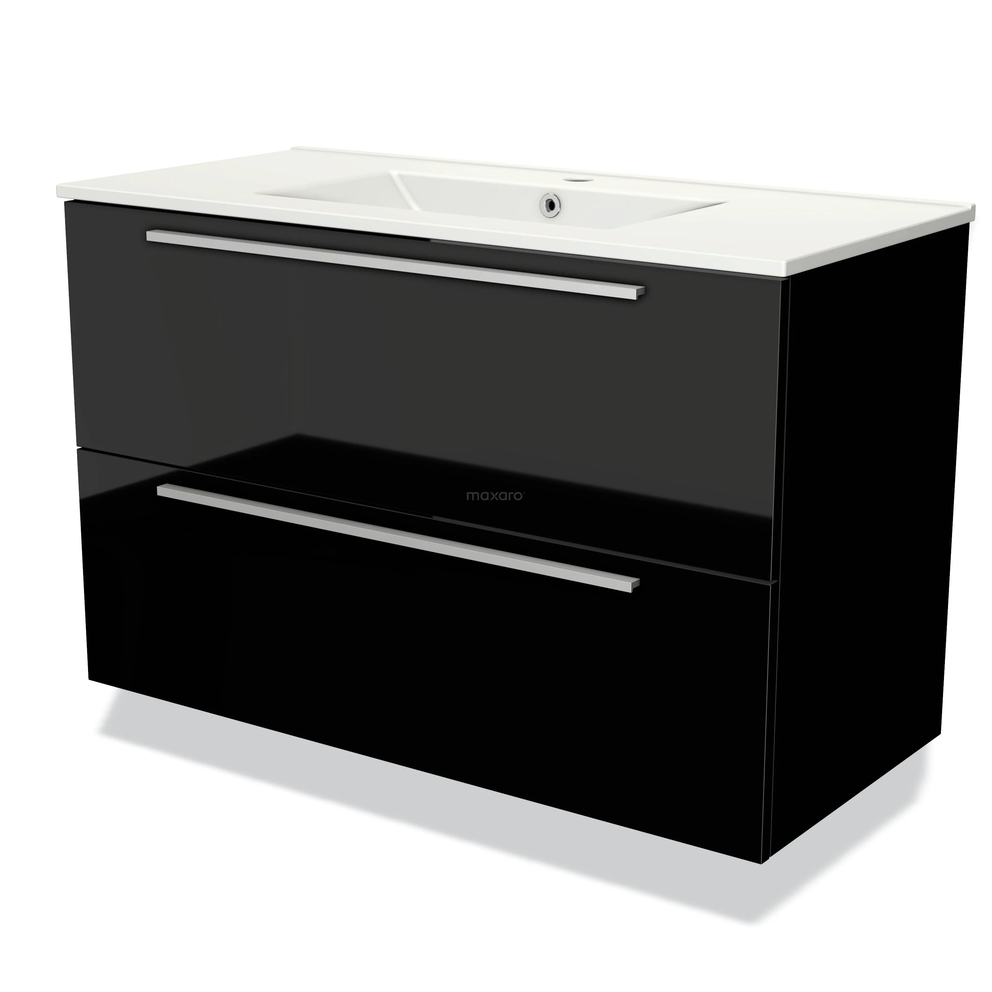 Modulo Vanity units with basin | 100 cm High-gloss black Flat front Ceramic 2 Stacked drawers