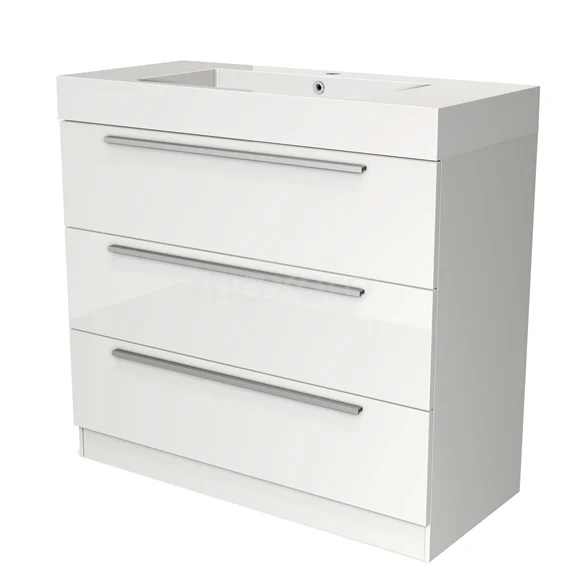 Modulo Vanity units with basin | 100 cm High-gloss white Flat front Mineral marble 3 standing drawers