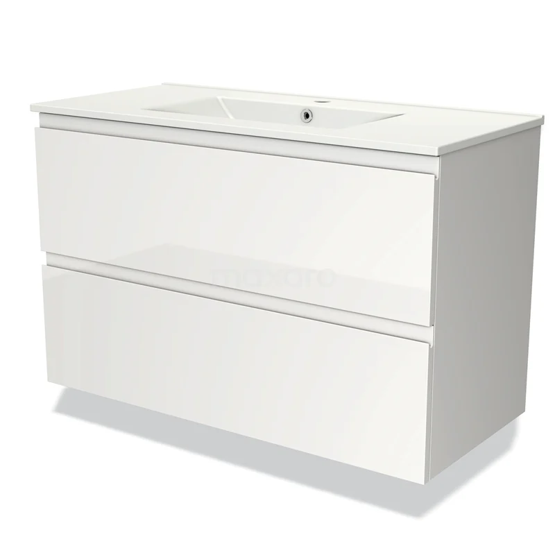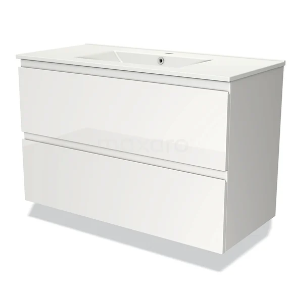 Modulo Bathroom furniture with sink | 100 cm High-gloss white Handle-less front Ceramic 2 Stacked drawers