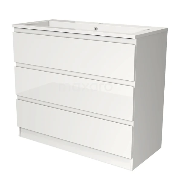Modulo Vanity units with basin | 100 cm High-gloss white Handle-less front Mineral marble 3 standing drawers