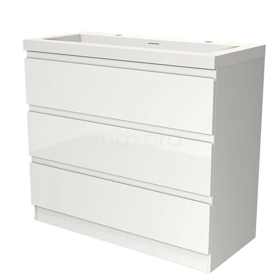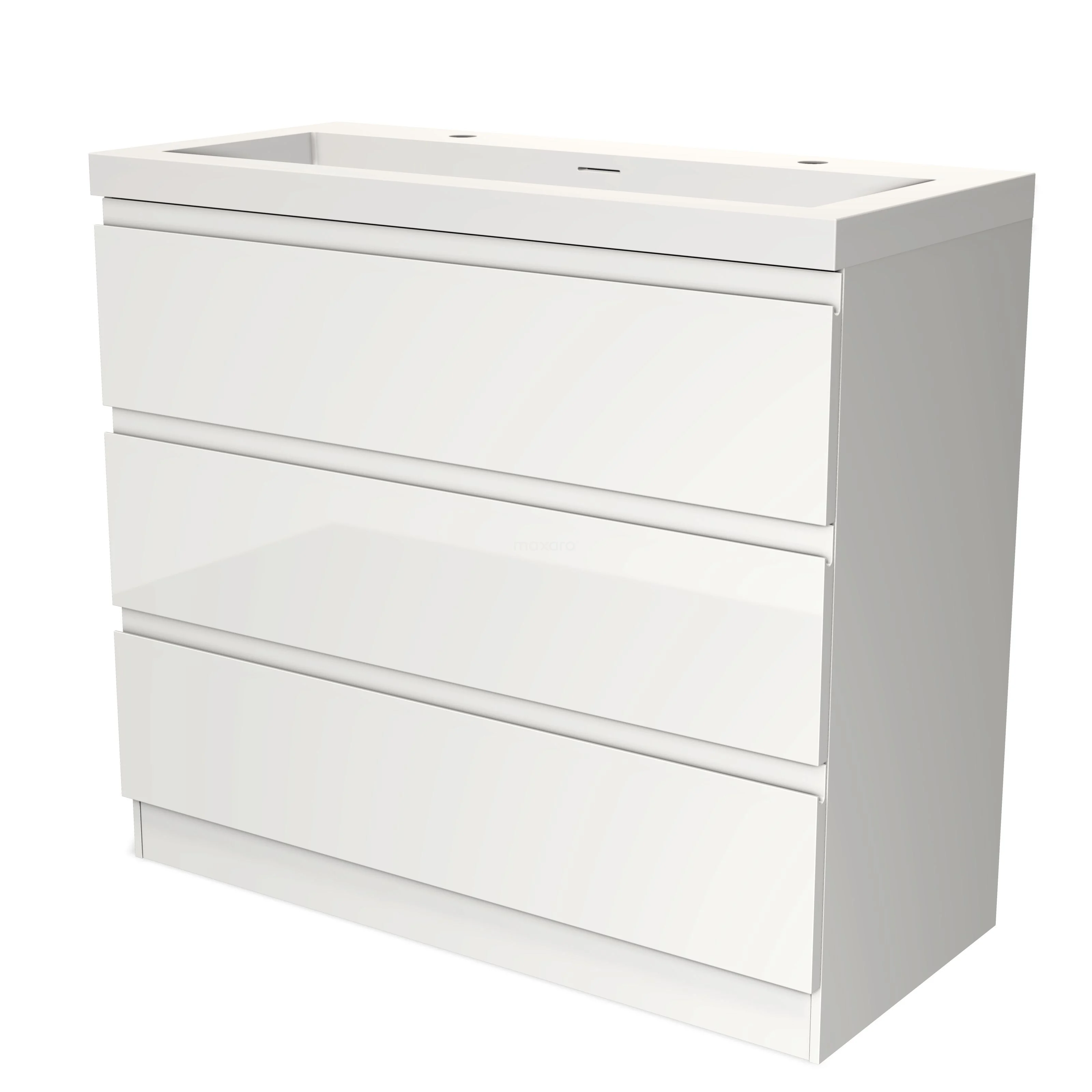 Modulo Vanity units with basin | 100 cm High-gloss white Handle-less front Solid surface 3 standing drawers