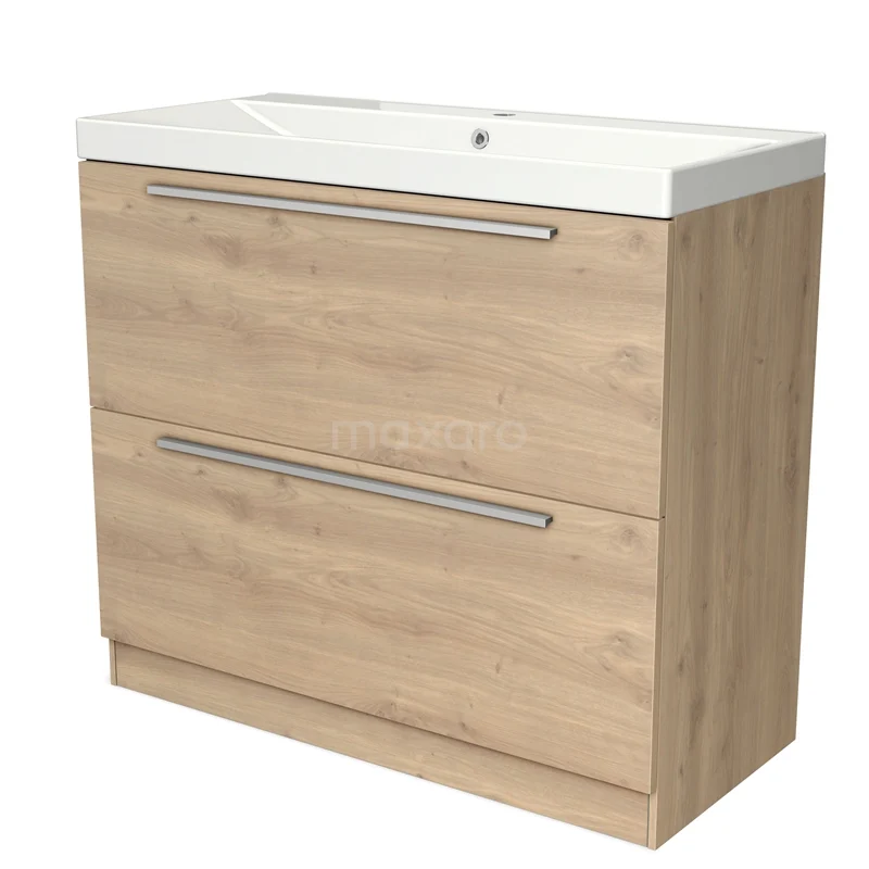 Modulo Vanity units with basin | 100 cm Light brown oak Flat front Ceramic 2 high drawers standing drawers under each other