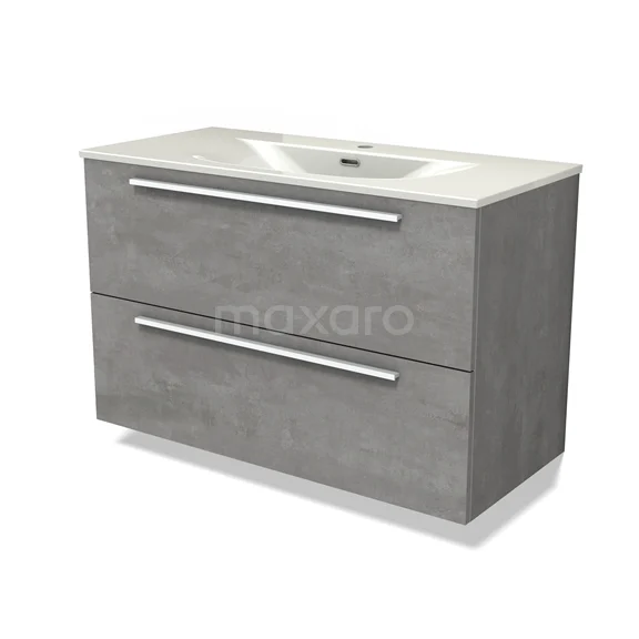 Modulo Vanity units with basin | 100 cm Light grey concrete Flat front Ceramic 2 Stacked drawers