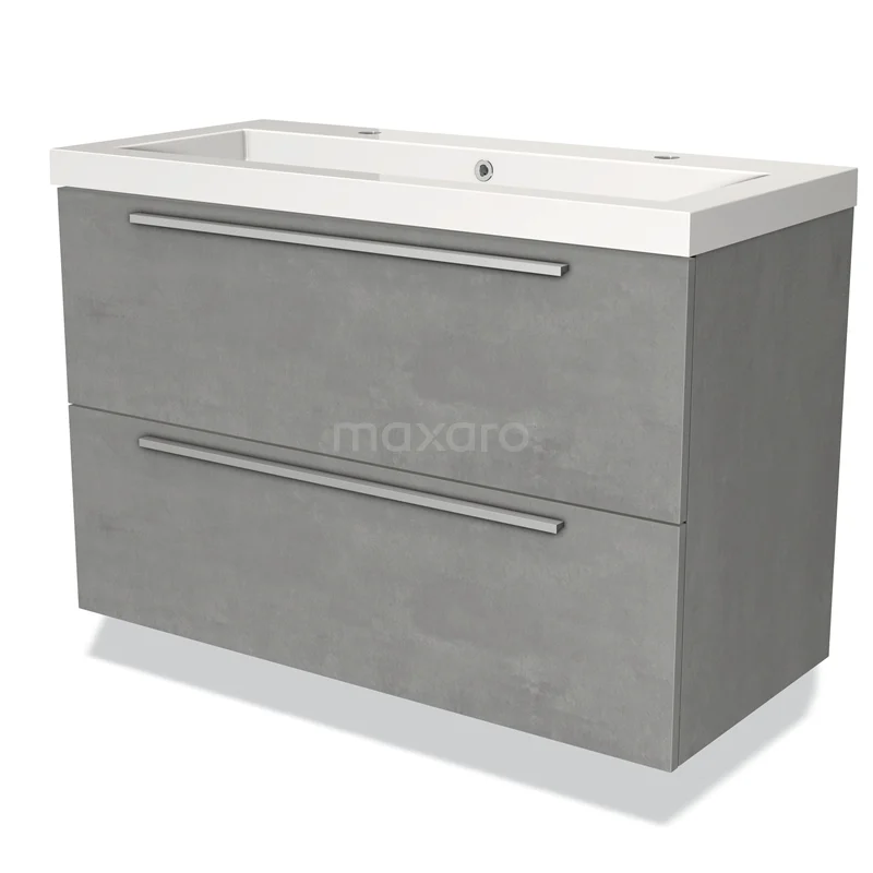 Modulo Vanity units with basin | 100 cm Light grey concrete Flat front Mineral marble 2 Stacked drawers