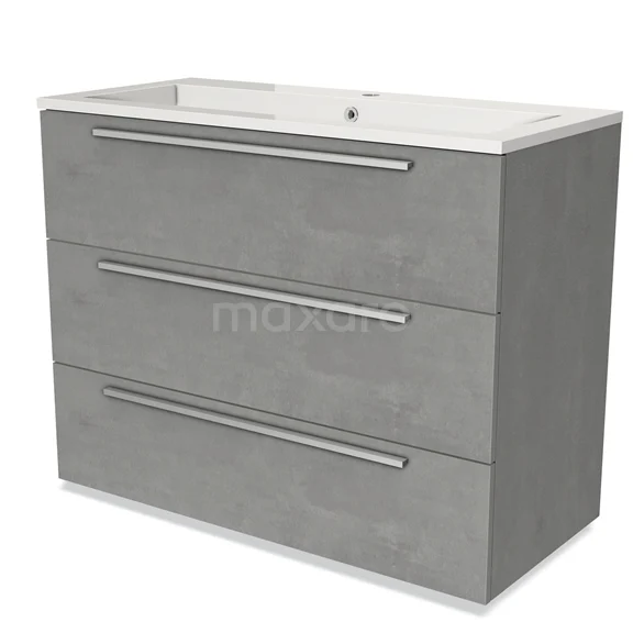 Modulo Vanity units with basin | 100 cm Light grey concrete Flat front Mineral marble 3 drawers
