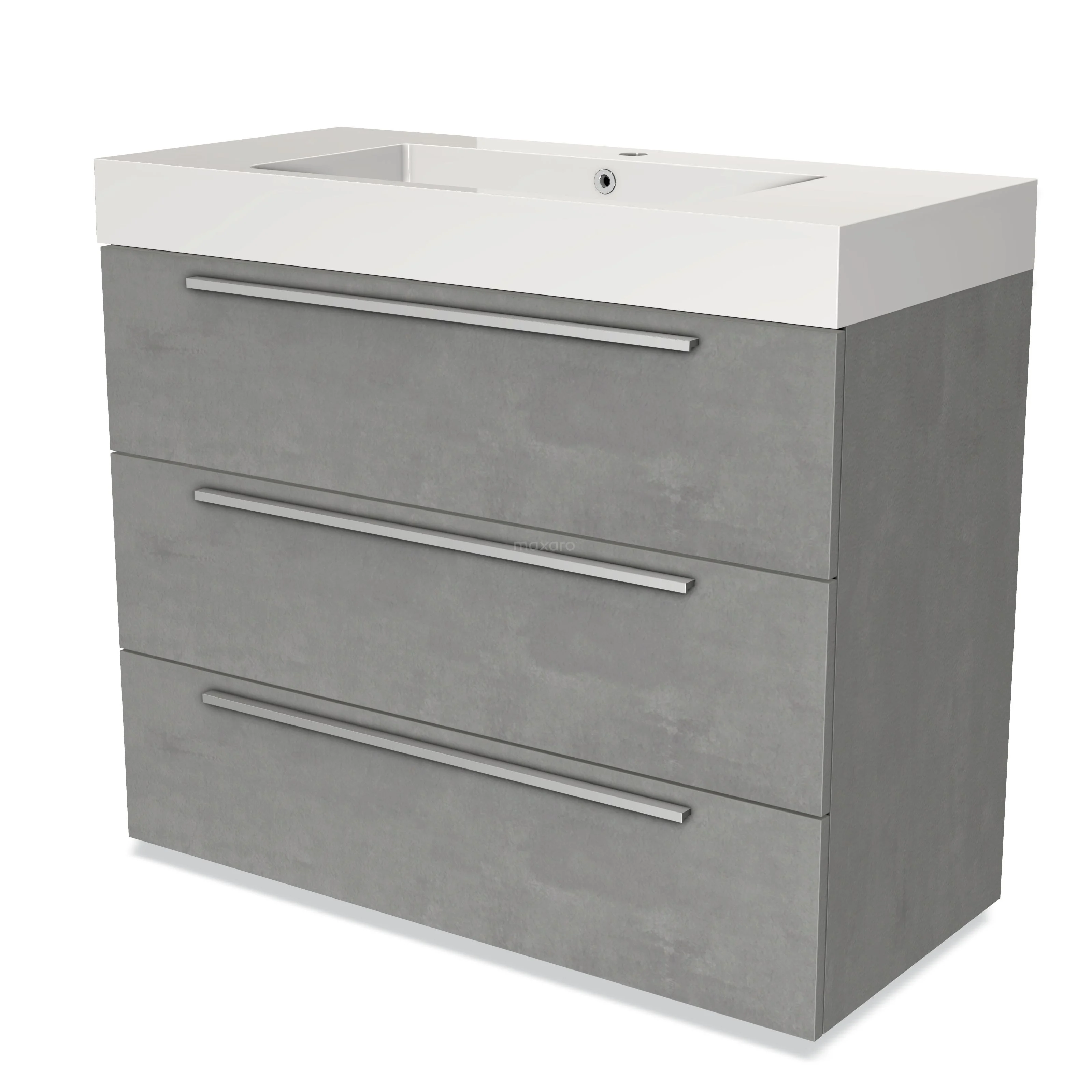 Modulo Vanity units with basin | 100 cm Light grey concrete Flat front Mineral marble 3 drawers