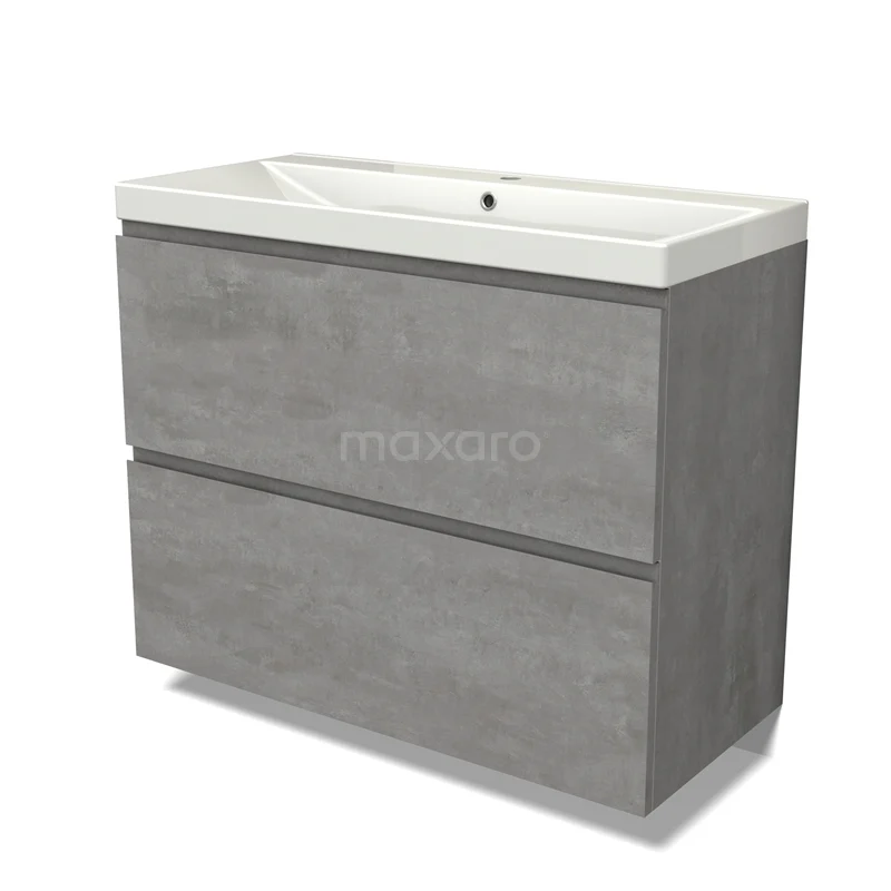 Modulo Vanity units with basin | 100 cm Light grey concrete Handle-less front Ceramic 2 stacked drawers under each other