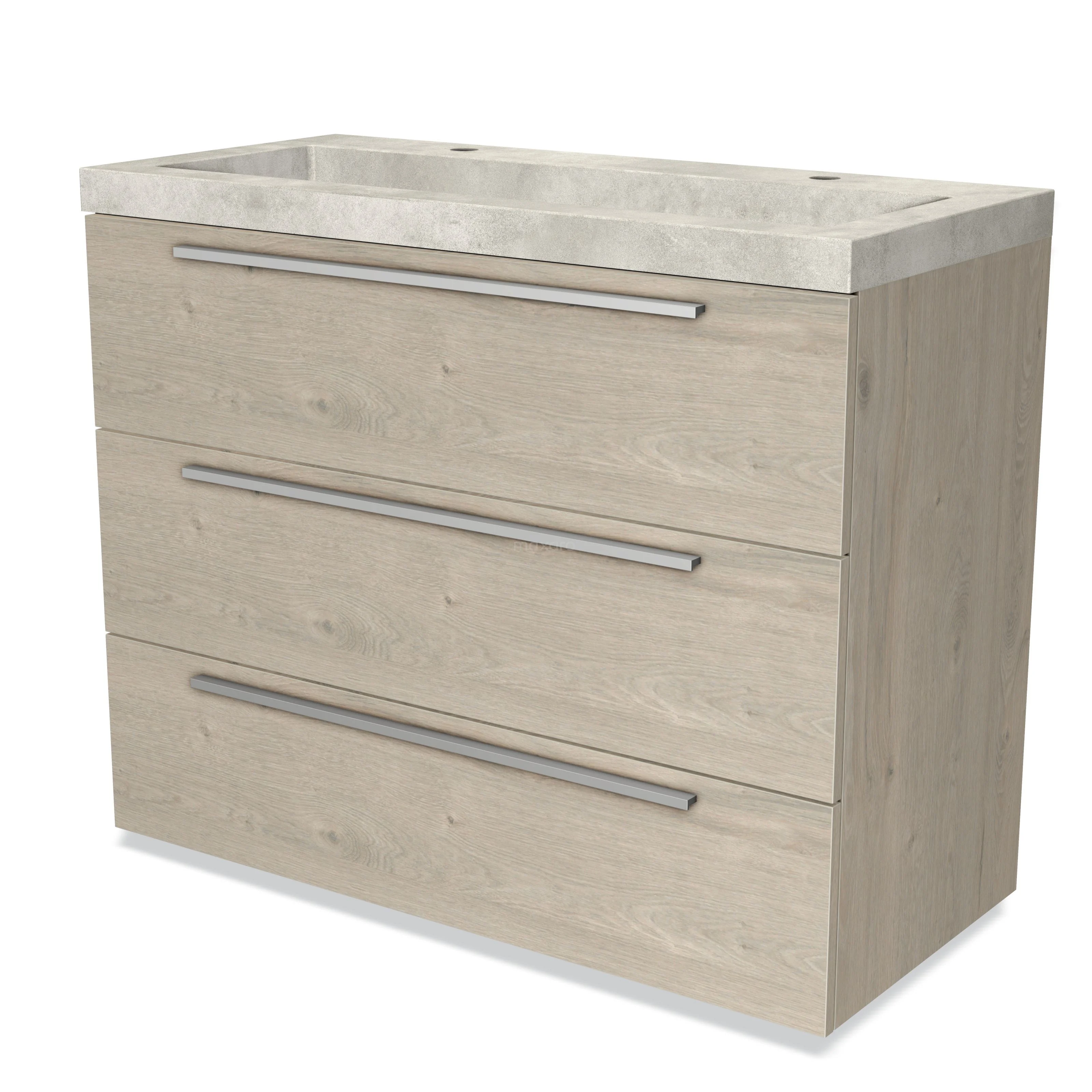 Modulo Vanity units with basin | 100 cm Light grey oak Flat front Concrete 3 drawers