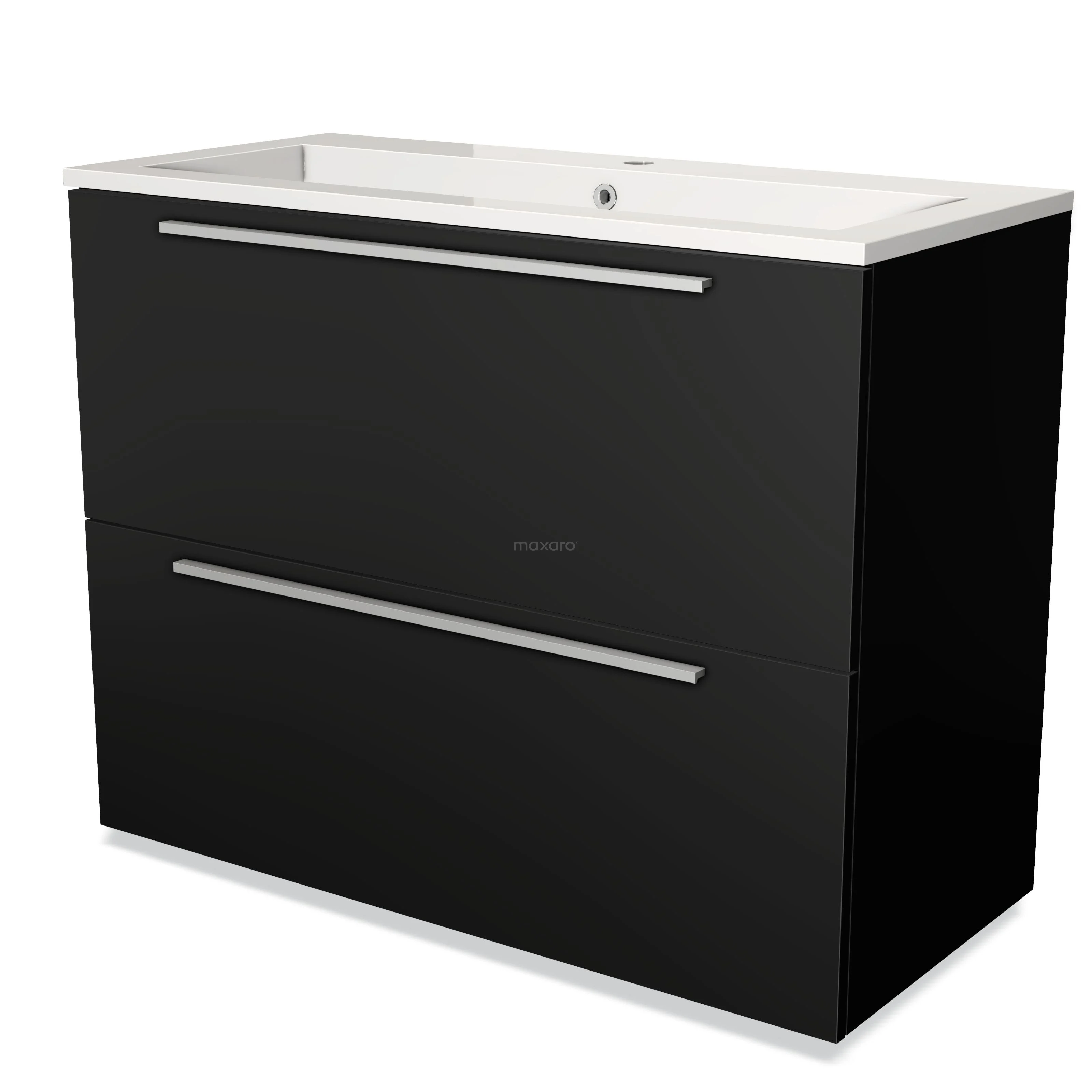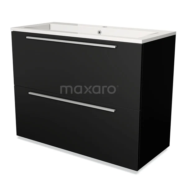 Modulo Vanity units with basin | 100 cm Matte black Flat front Mineral marble 2 stacked drawers under each other