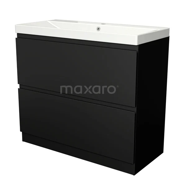 Modulo Vanity units with basin | 100 cm Matte black Handle-less front Ceramic 2 high drawers standing drawers under each other