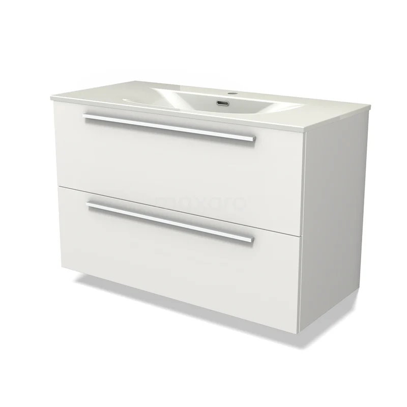 Modulo Vanity units with basin | 100 cm Matte white Flat front Ceramic 2 Stacked drawers