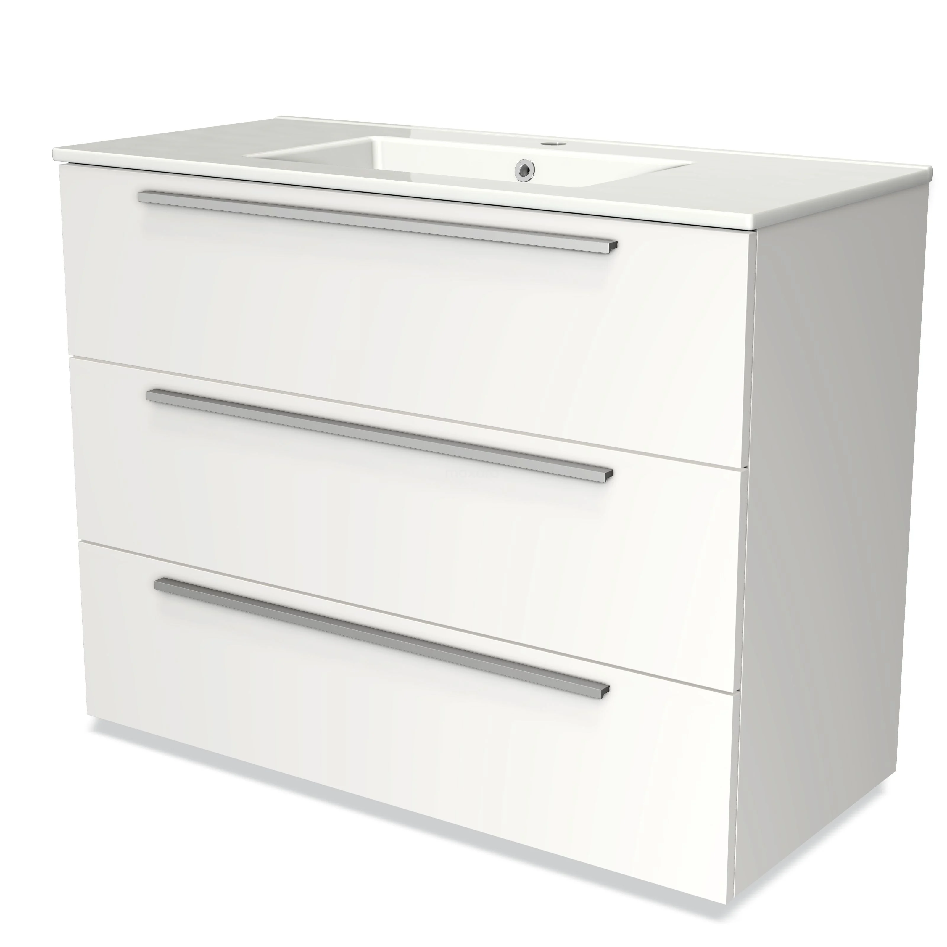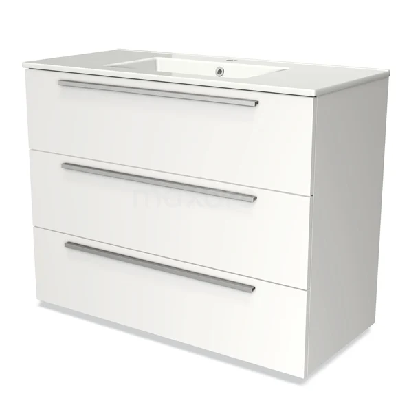 Modulo Vanity units with basin | 100 cm Matte white Flat front Ceramic 3 drawers