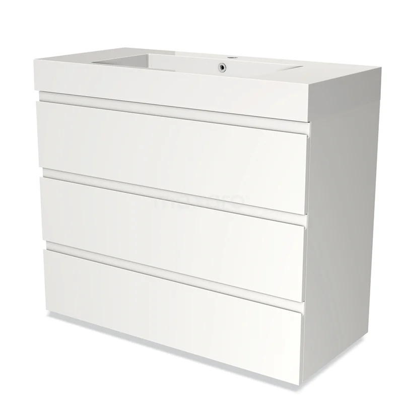 Undercabinet with spacious drawers The base cabinet is equipped with 3 drawers, providing space for all your bathroom utensils. Thanks to the soft open and close system, the drawers open and close silently. Moreover, they are extra high and fully extendable. Furthermore, the unit has a smart siphon cut-out. This allows you to make optimal use of the available space.