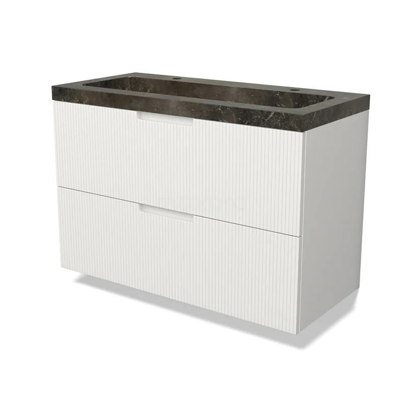 Modulo Vanity units with basin | 100 cm Matte white Line front Natural stone 2 Stacked drawers