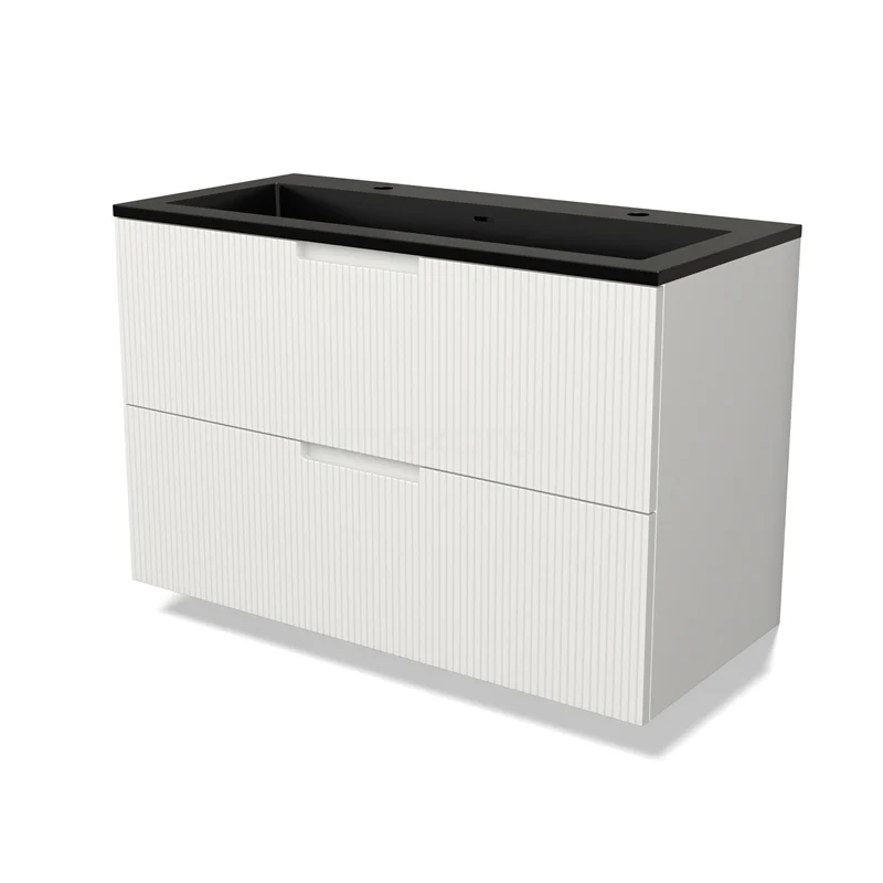 Modulo Vanity units with basin | 100 cm Matte white Line front Quartz 2 Stacked drawers