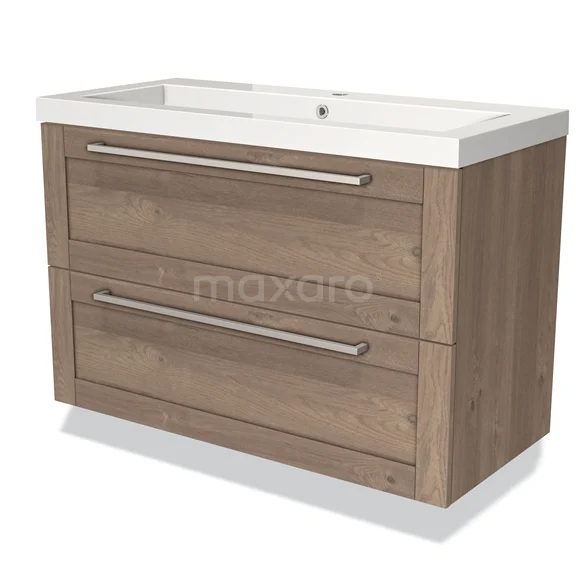 Modulo Vanity units with basin | 100 cm Mid brown oak Frame front Mineral marble 2 Stacked drawers
