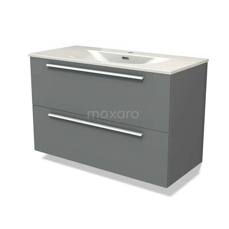 Modulo Vanity units with basin | 100 cm Mid grey Flat front Ceramic 2 Stacked drawers