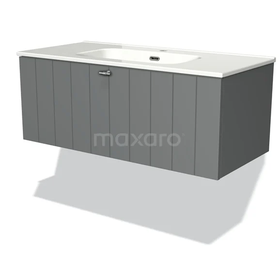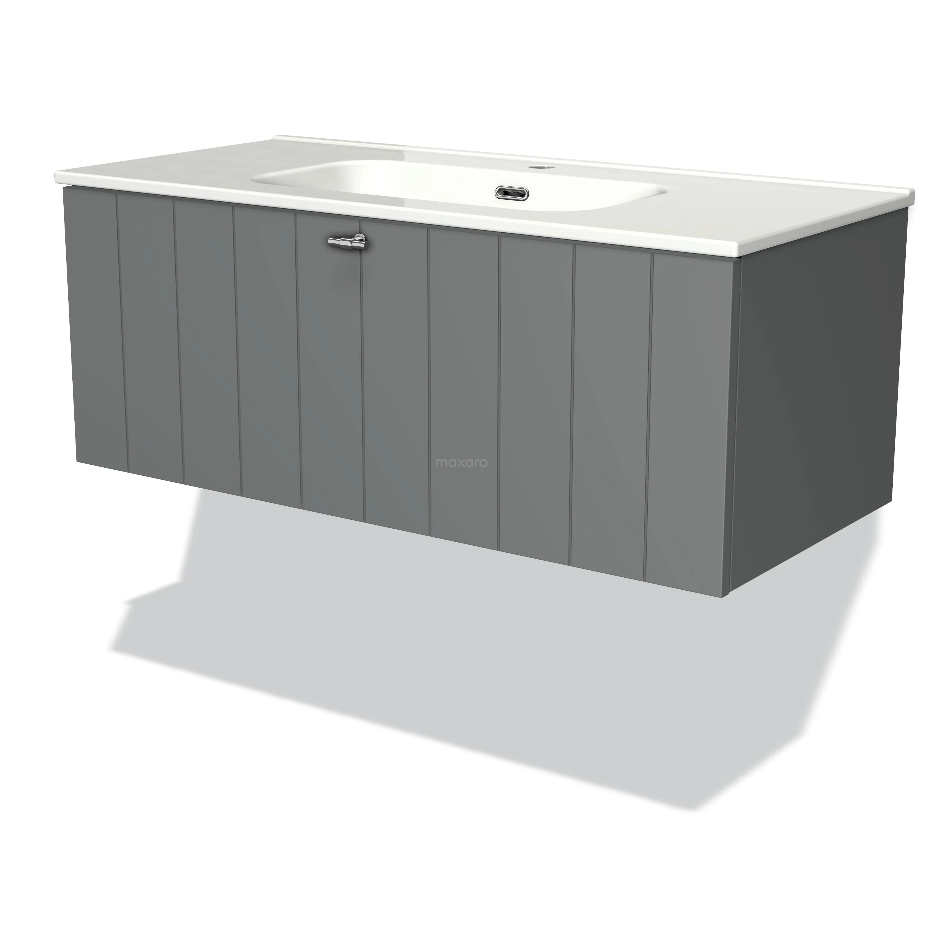 Modulo Vanity units with basin | 100 cm Mid grey Slat front Ceramic 1 drawer