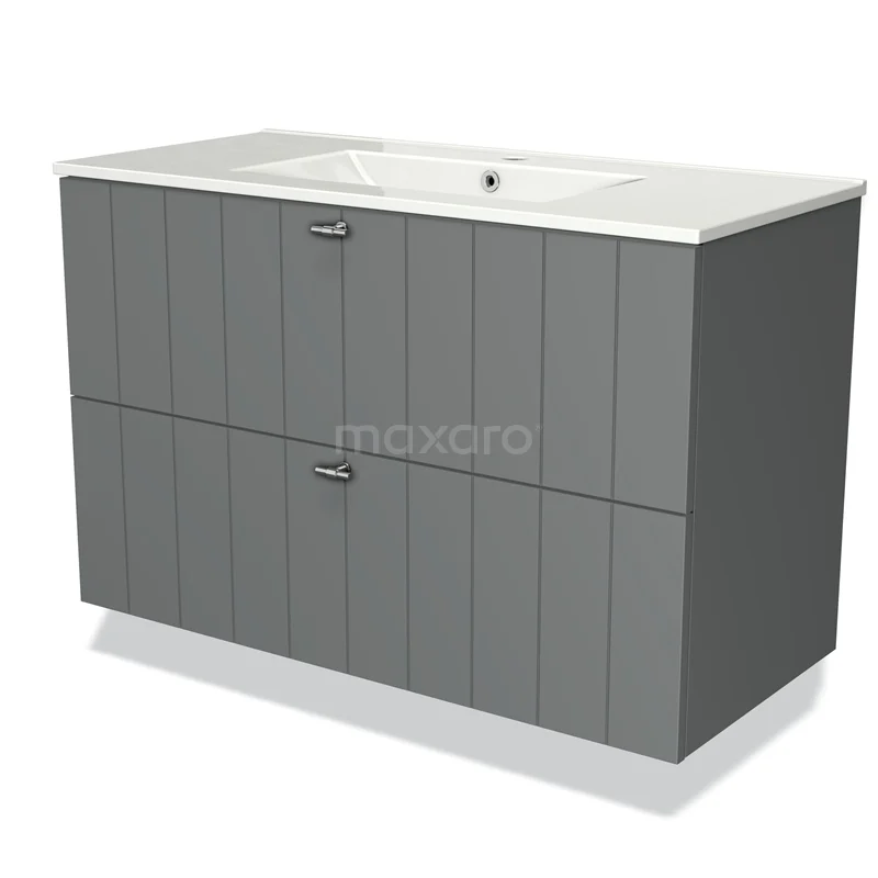 Modulo Vanity units with basin | 100 cm Mid grey Slat front Ceramic 2 Stacked drawers