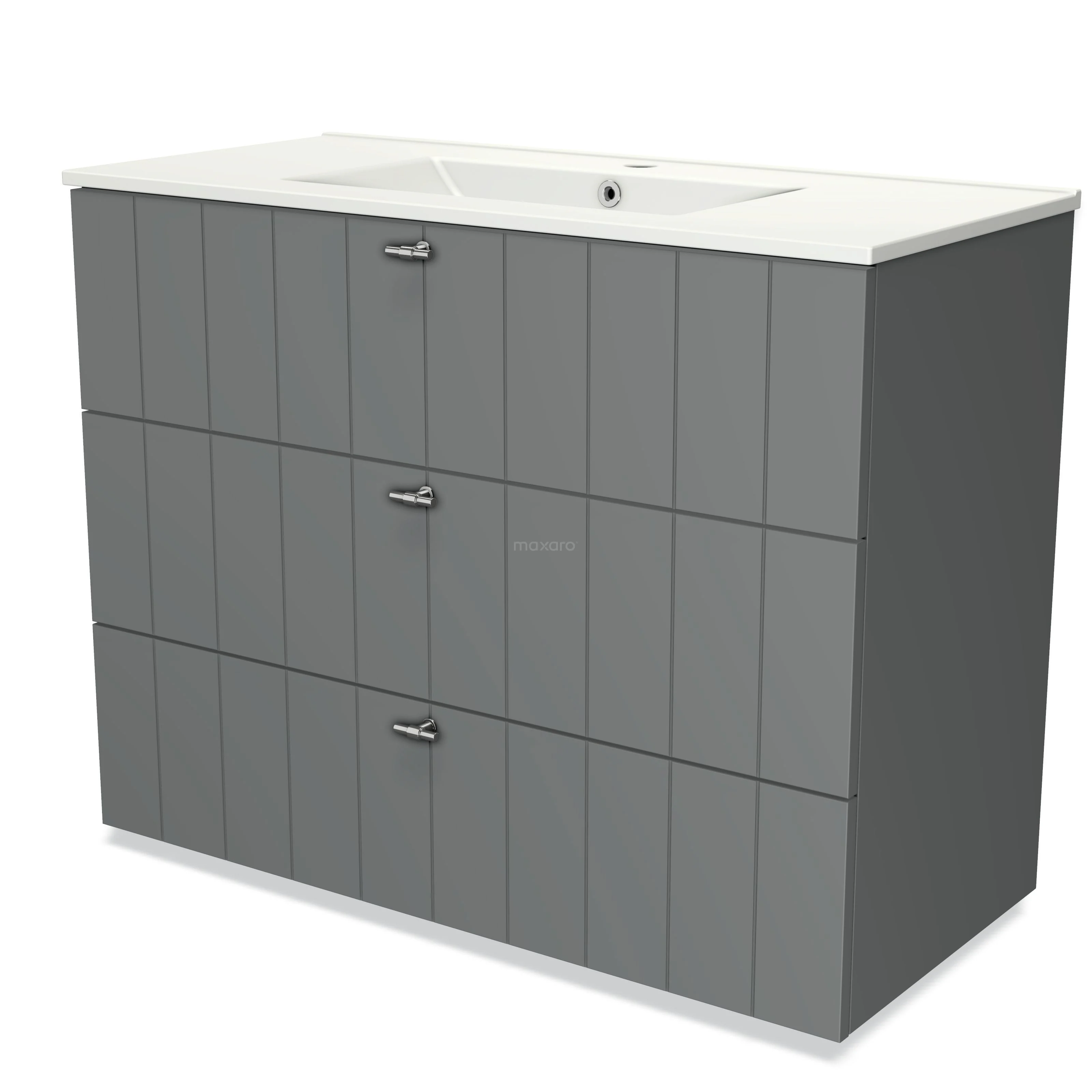 Modulo Vanity units with basin | 100 cm Mid grey Slat front Ceramic 3 drawers