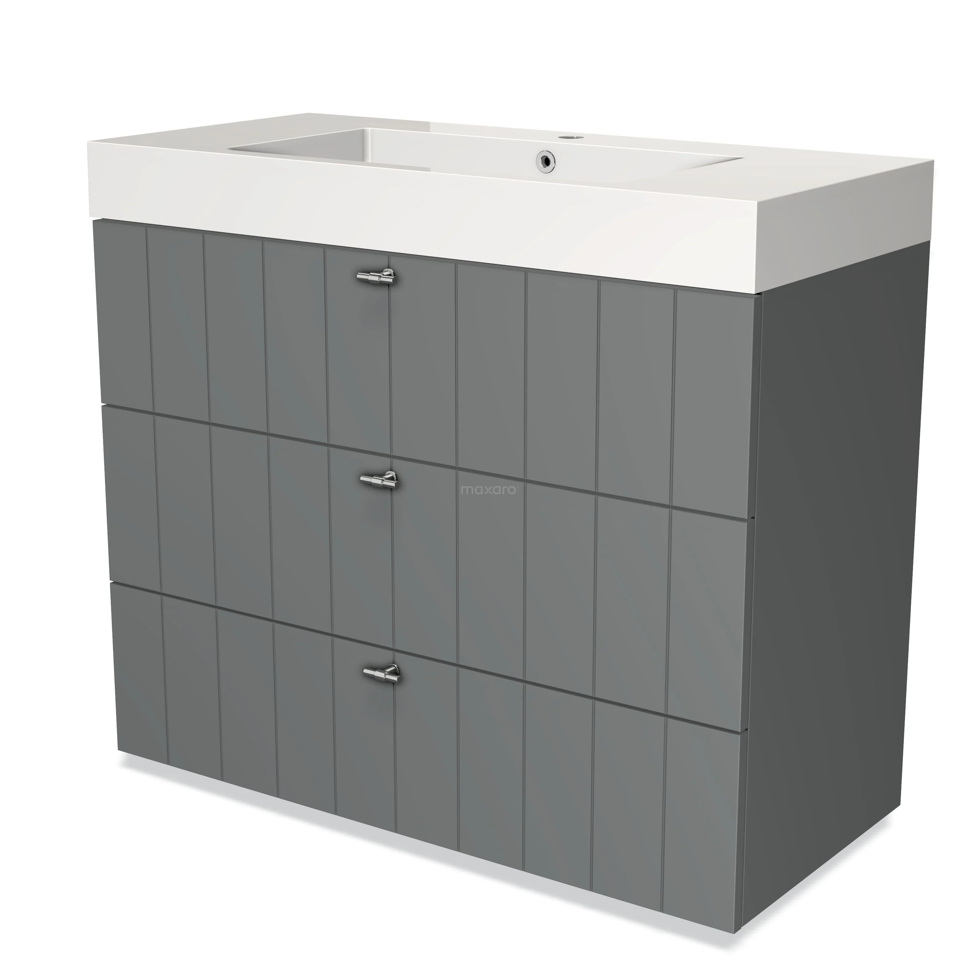 Modulo Vanity units with basin | 100 cm Mid grey Slat front Mineral marble 3 drawers