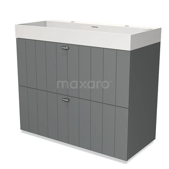 Modulo Vanity units with basin | 100 cm Mid grey Slat front Solid surface 2 stacked drawers under each other