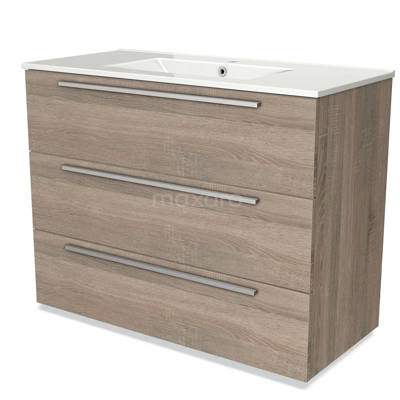 Modulo Vanity units with basin | 100 cm Oak Flat front Ceramic 3 drawers