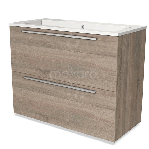 Modulo Vanity units with basin | 100 cm Oak Flat front Mineral marble 2 stacked drawers under each other