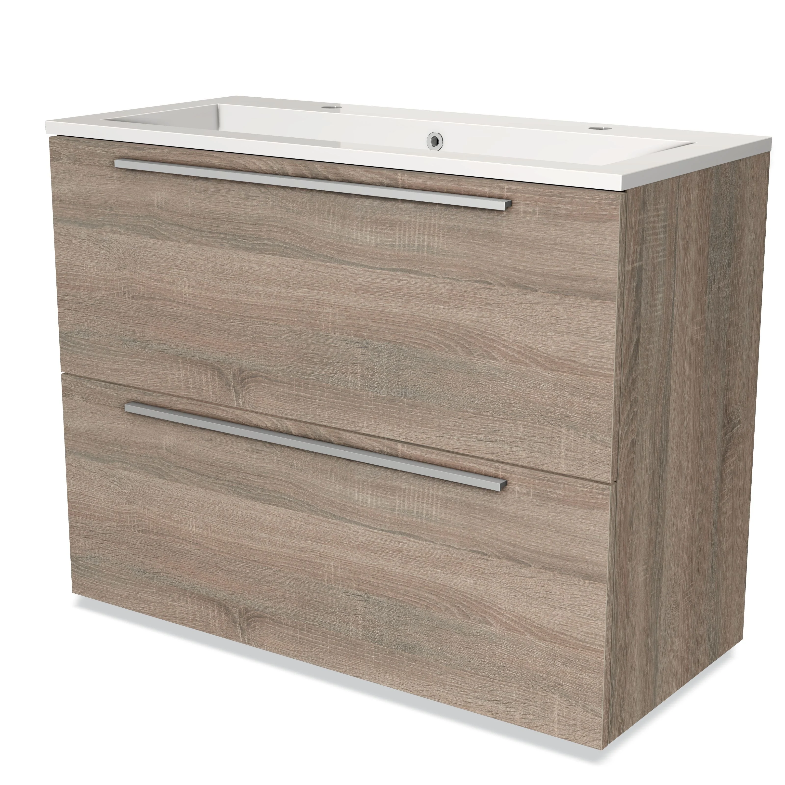 Modulo Vanity units with basin | 100 cm Oak Flat front Mineral marble 2 stacked drawers under each other