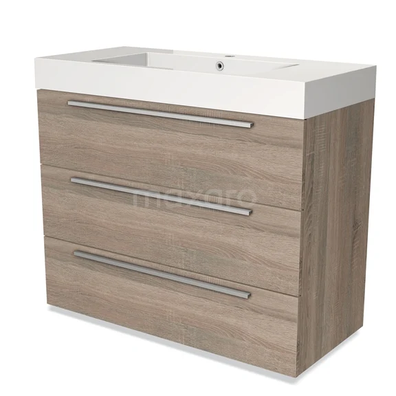 Modulo Vanity units with basin | 100 cm Oak Flat front Mineral marble 3 drawers