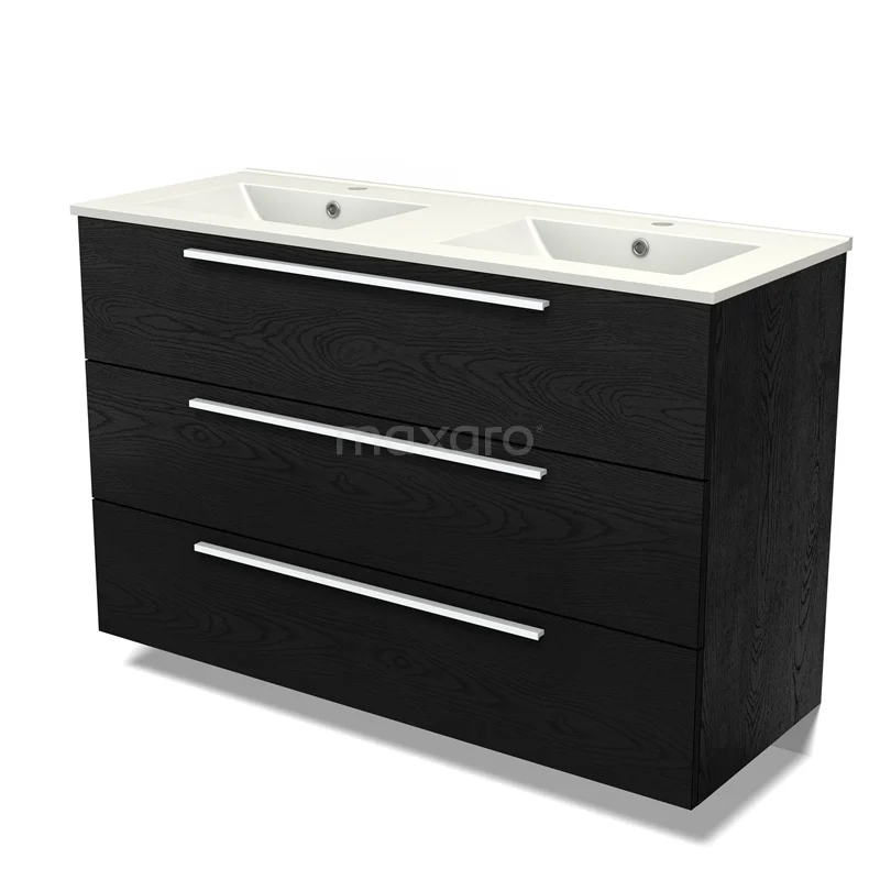 Modulo Vanity units with basin | 120 cm Black oak Flat front Ceramic 3 drawers