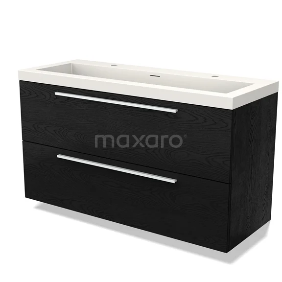 Modulo Vanity units with basin | 120 cm Black oak Flat front Solid surface 2 Stacked drawers