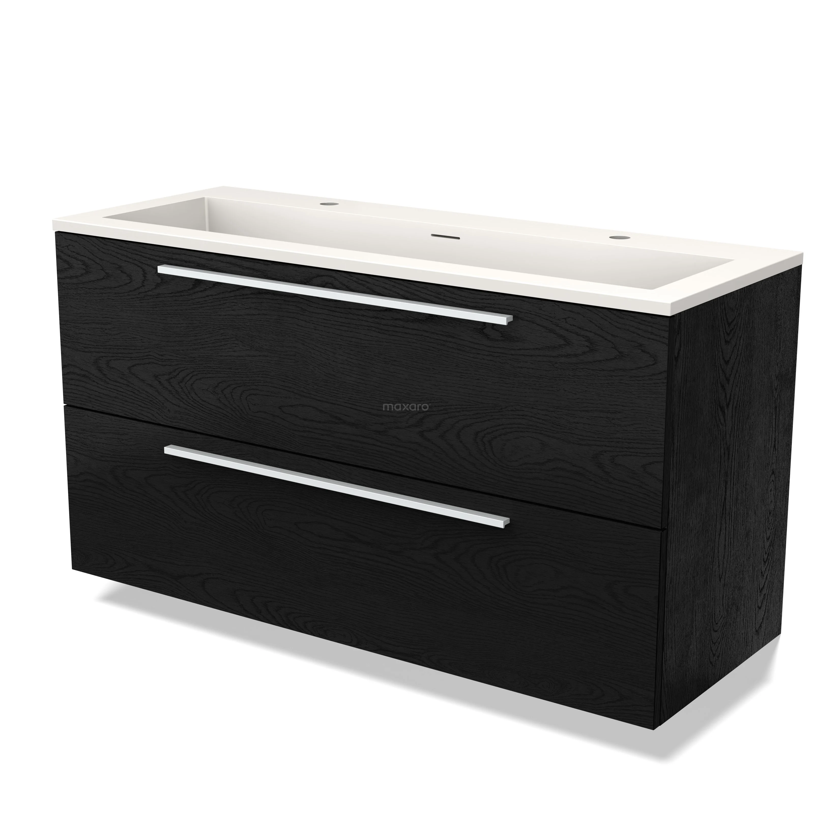 Modulo Vanity units with basin | 120 cm Black oak Flat front Solid surface 2 Stacked drawers