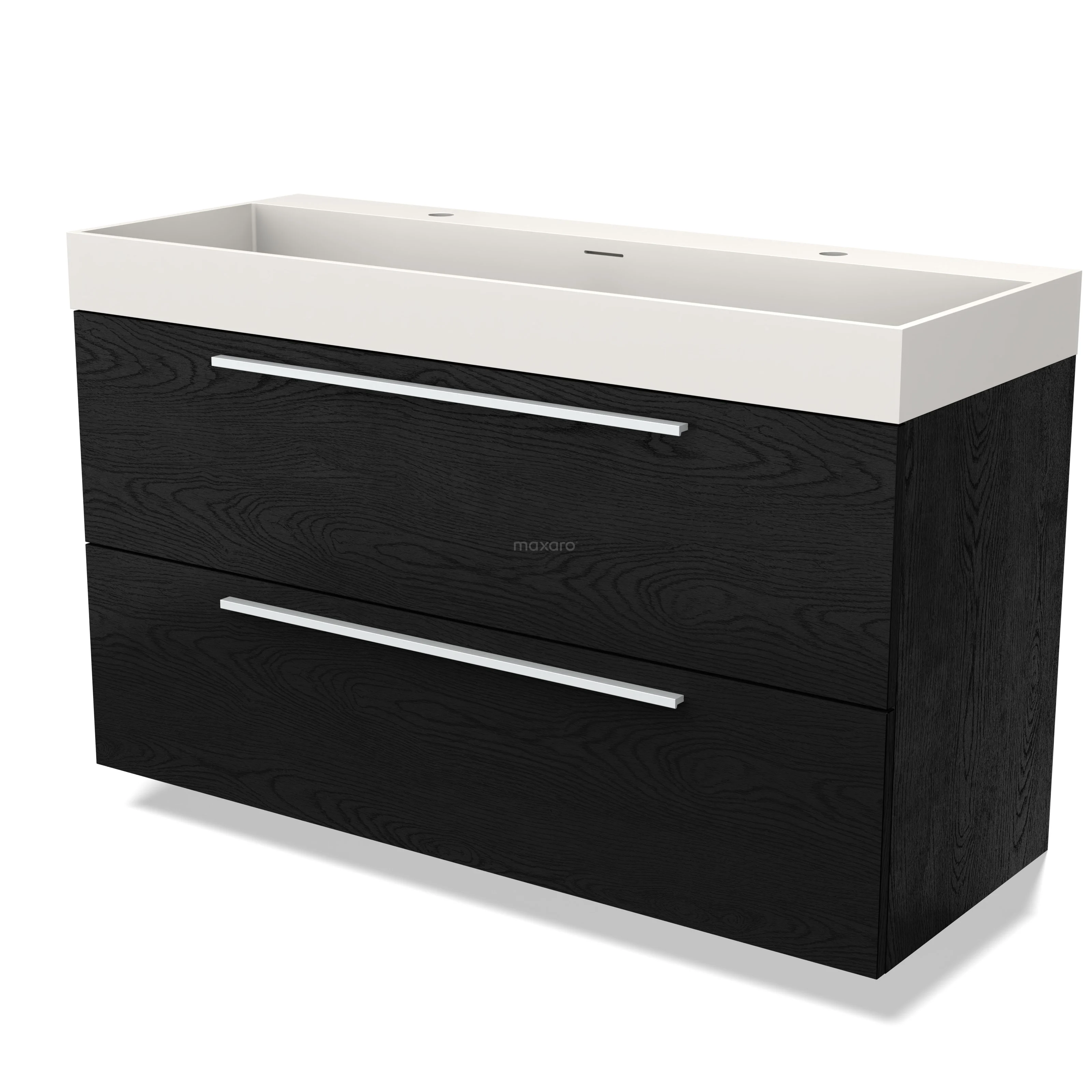 Modulo Vanity units with basin | 120 cm Black oak Flat front Solid surface 2 Stacked drawers