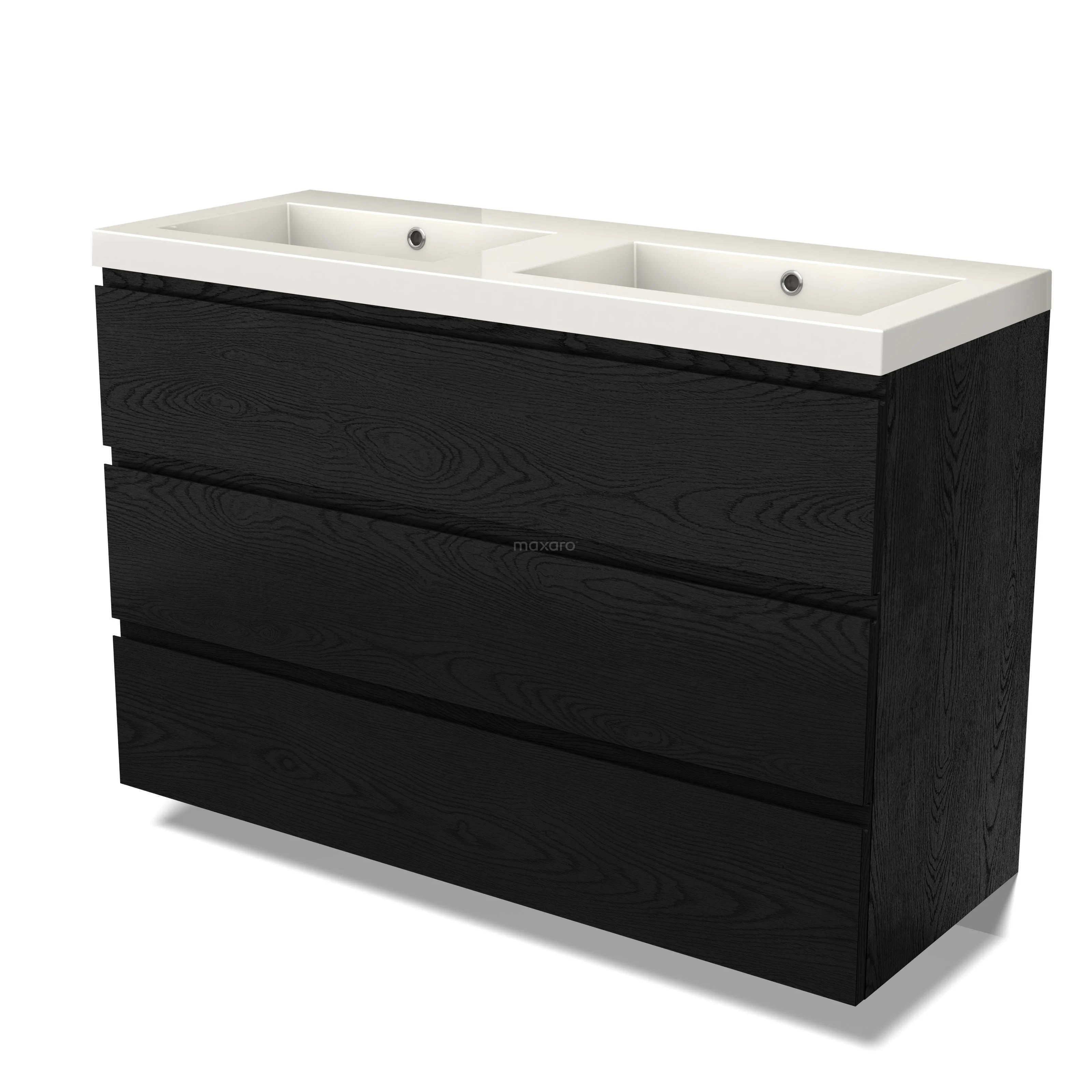 Modulo Vanity units with basin | 120 cm Black oak Handle-less front Mineral marble 3 drawers