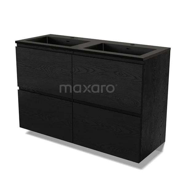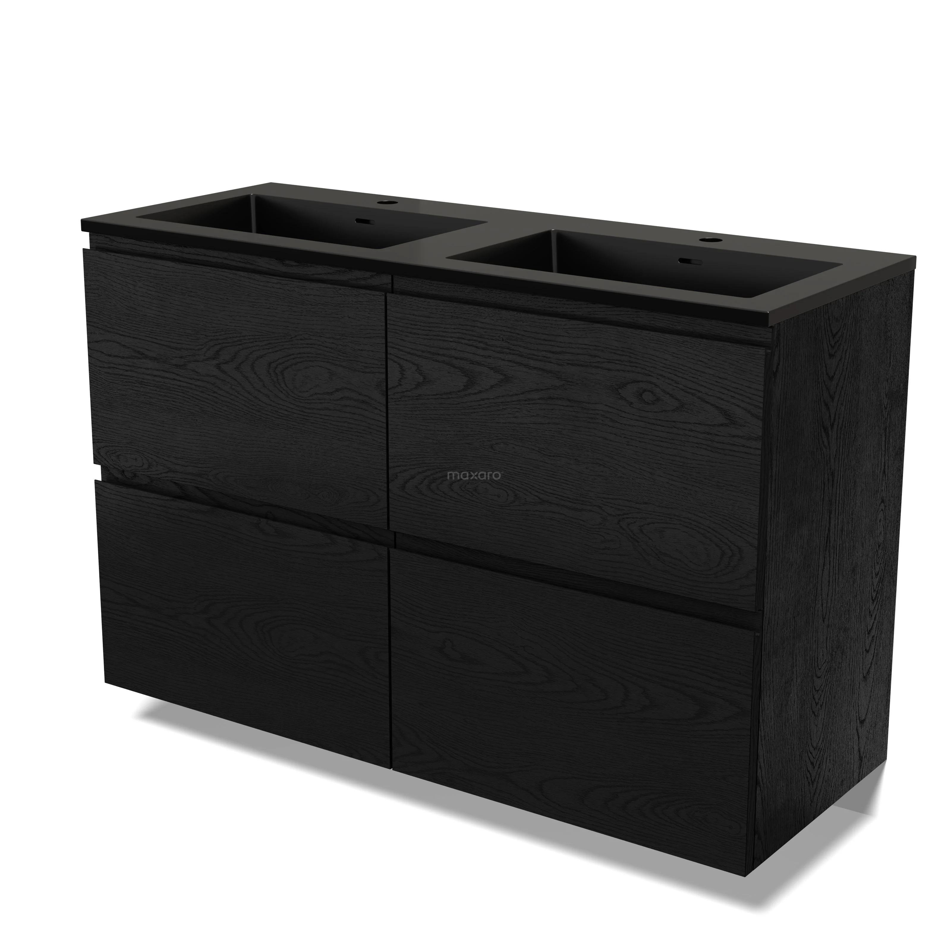 Modulo Vanity units with basin | 120 cm Black oak Handle-less front Quartz 4 high drawers