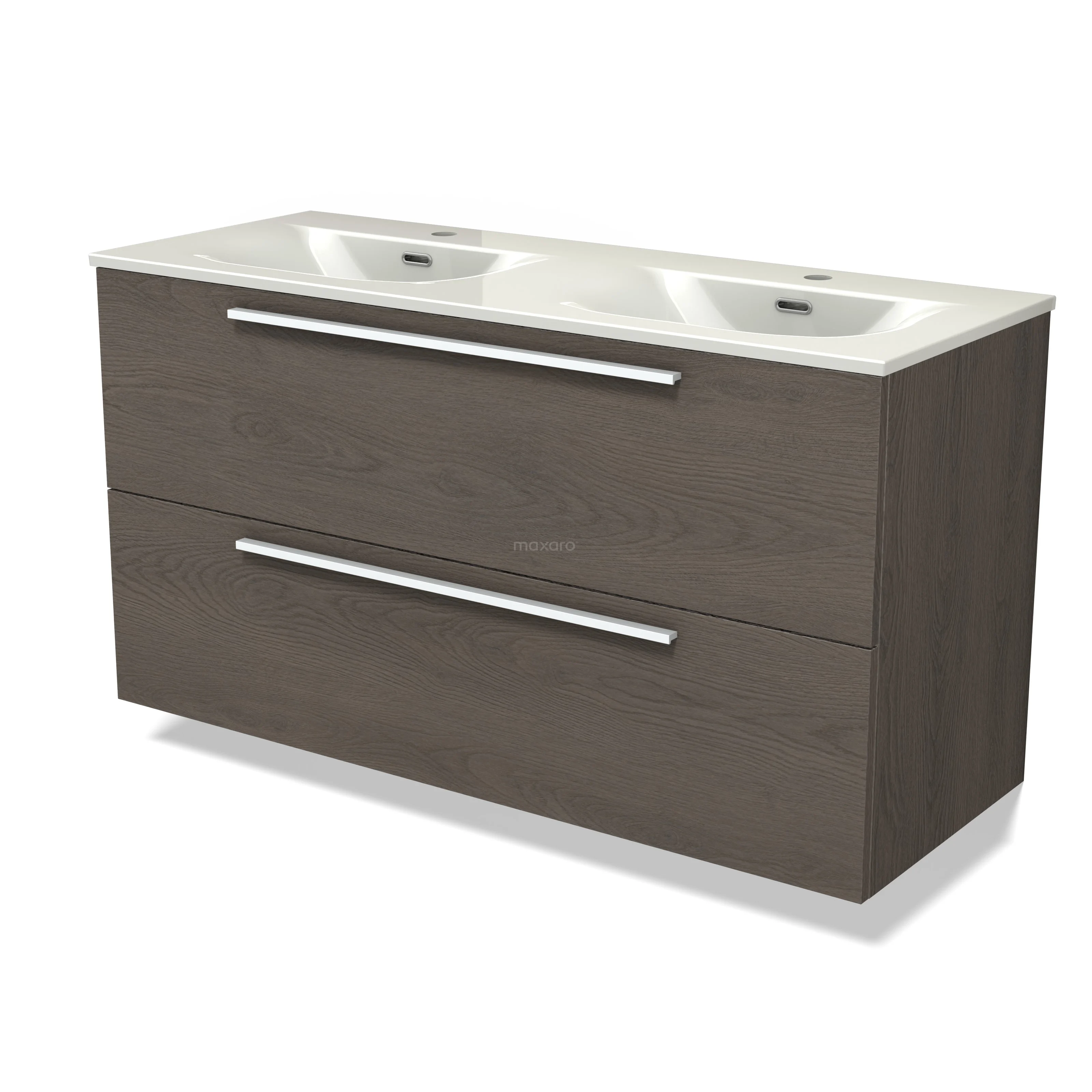 Modulo Vanity units with basin | 120 cm Dark brown oak Flat front Ceramic 2 Stacked drawers