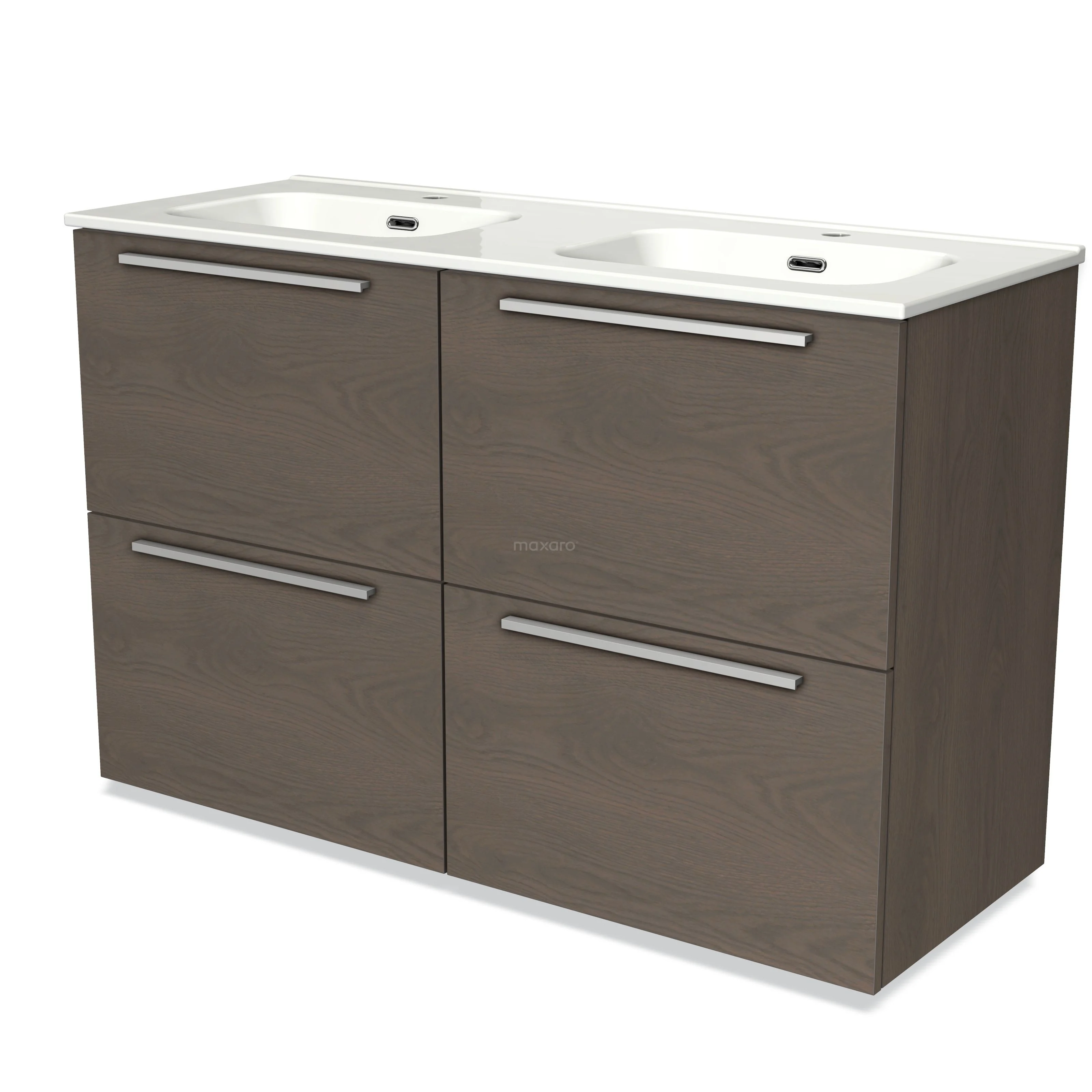Modulo Vanity units with basin | 120 cm Dark brown oak Flat front Ceramic 4 high drawers