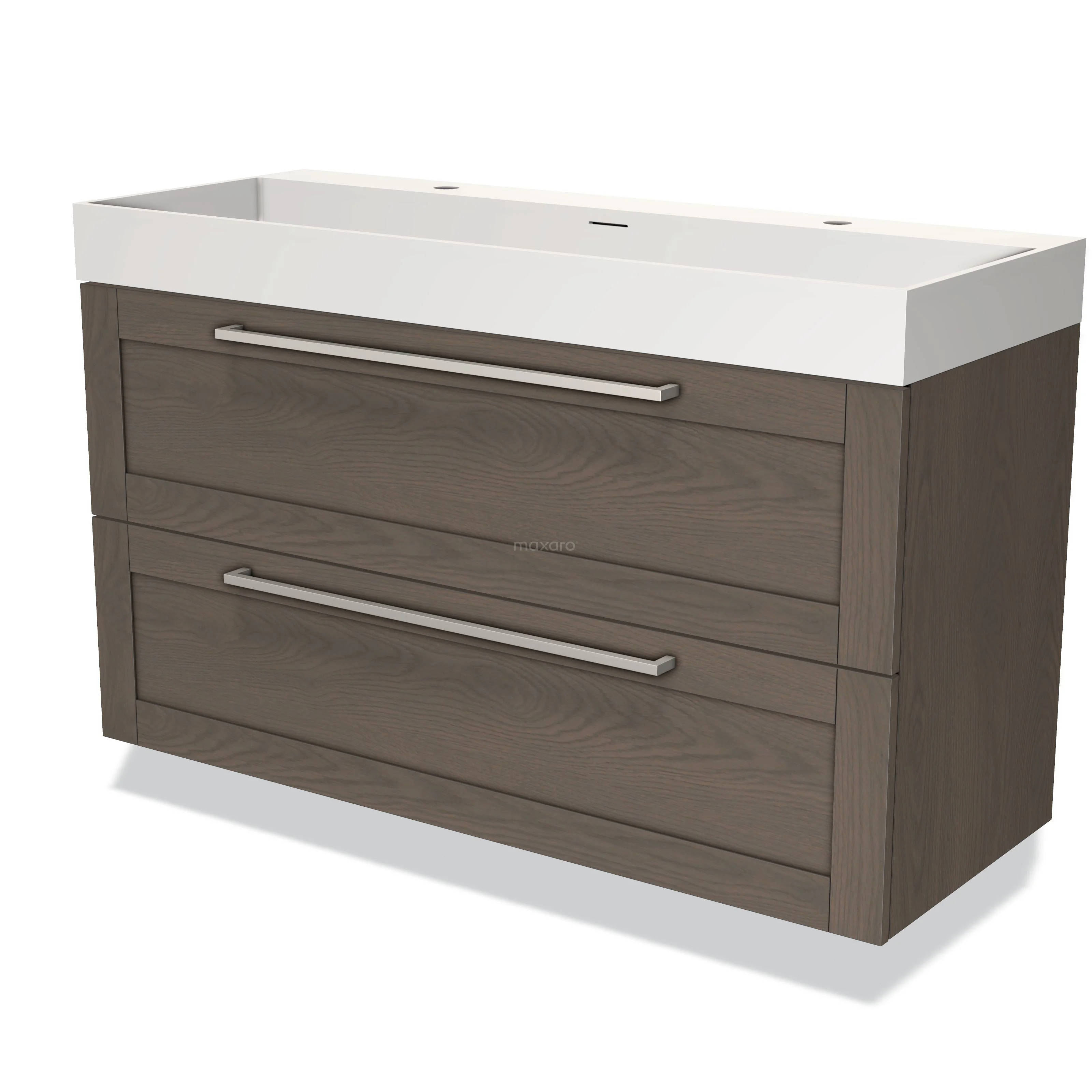 Modulo Vanity units with basin | 120 cm Dark brown oak Frame front Solid surface 2 Stacked drawers