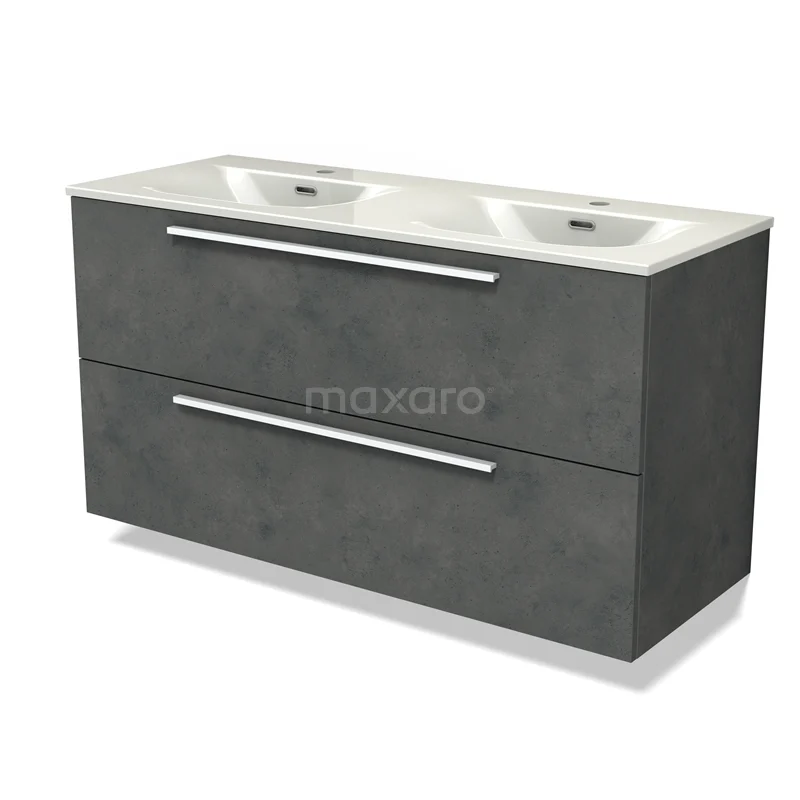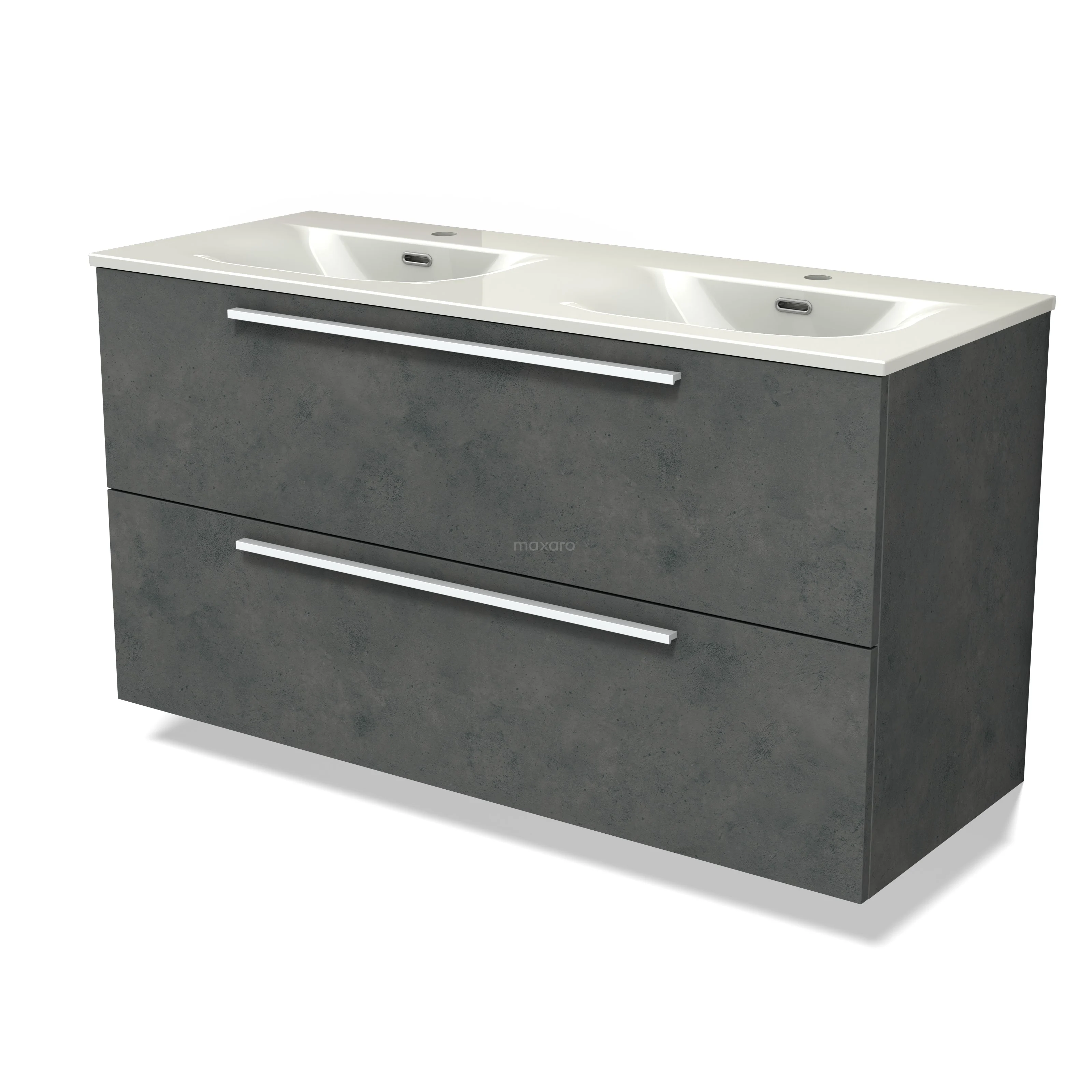 Modulo Vanity units with basin | 120 cm Dark grey concrete Flat front Ceramic 2 Stacked drawers